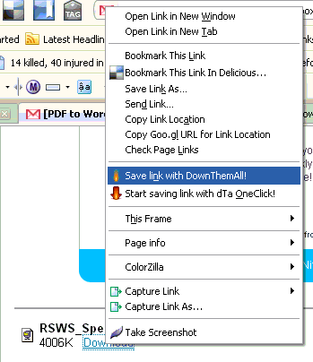 - If you want to download a single file, right click on the link and select “Save link with DownThemAll!“.